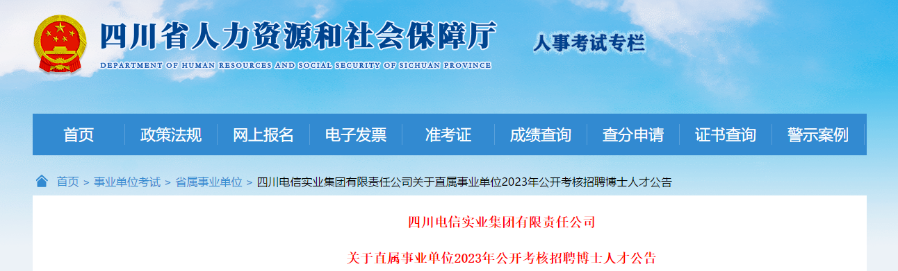 2023年四川電信實(shí)業(yè)集團(tuán)有限責(zé)任公司直屬事業(yè)單位考核招聘博士人才公告。現(xiàn)將公告原文發(fā)布如下: