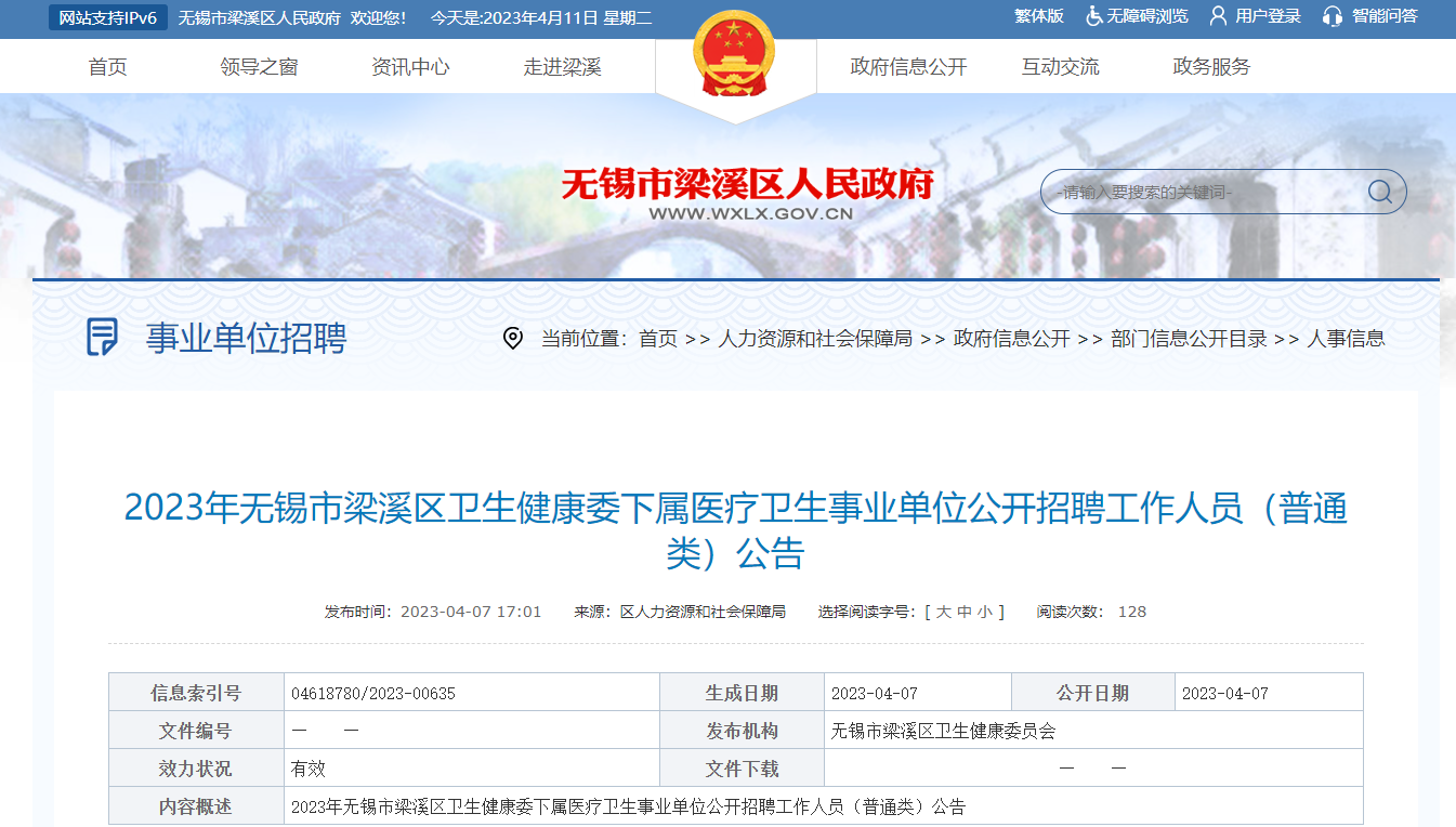 2023江蘇無(wú)錫市梁溪區(qū)衛(wèi)生健康委下屬醫(yī)療衛(wèi)生事業(yè)單位招聘(普通類(lèi))28人,招聘單位自招聘公告發(fā)布日起接受報(bào)名,截止2023年4月21日17:00,現(xiàn)將招聘公告原文發(fā)布如下: