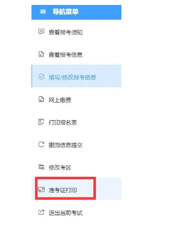 在左側(cè)導(dǎo)航欄選擇“準(zhǔn)考證打印”。