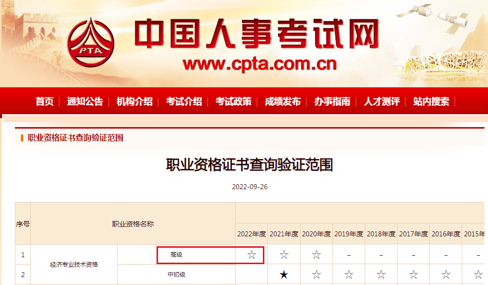 從中國(guó)人事考試網(wǎng)了解到,2022年上海高級(jí)經(jīng)濟(jì)師證書查詢驗(yàn)證系統(tǒng)已開通,考生可通過“中國(guó)人事考試網(wǎng)”查驗(yàn)證書信息。