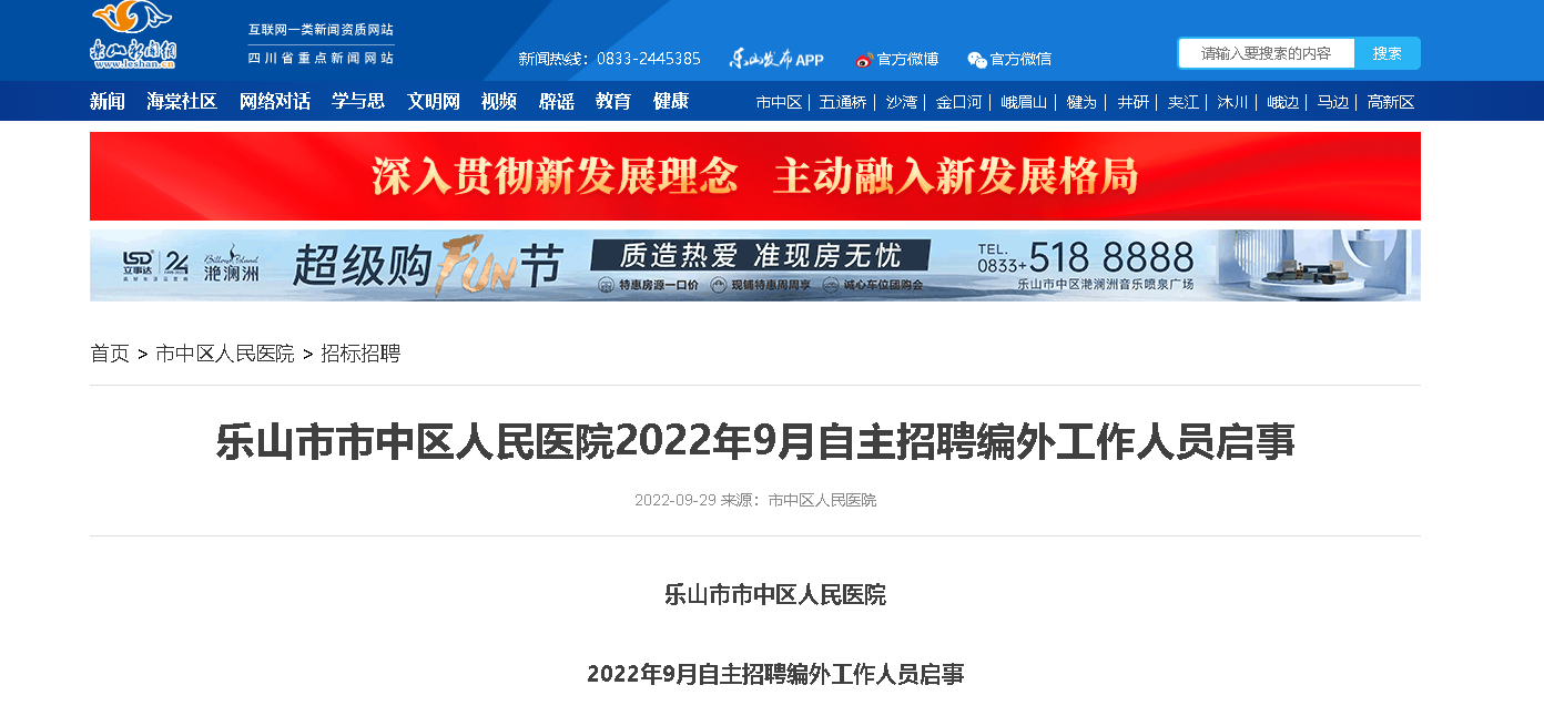 原文標(biāo)題:樂山市市中區(qū)人民醫(yī)院2022年9月自主招聘編外工作人員啟事
