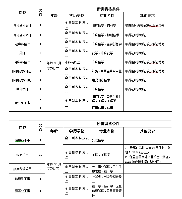 三、2022年3月公開招聘編外人員空缺崗位補(bǔ)招及資格條件