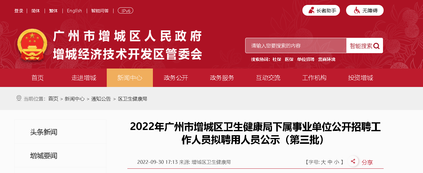原文標題:2022年廣州市增城區(qū)衛(wèi)生健康局下屬事業(yè)單位公開招聘工作人員擬聘用人員公示(第三批)