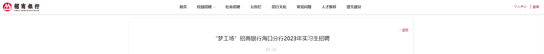 原文標(biāo)題:“夢工場”招商銀行海口分行2023年實(shí)習(xí)生招聘