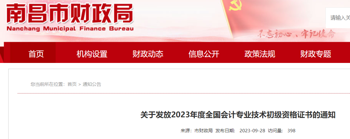 南昌考區(qū)2023年度全國會計專業(yè)技術(shù)初級資格證書將于2023年10月8日開始發(fā)放,請考試成績合格人員按如下要求領(lǐng)取合格證書: