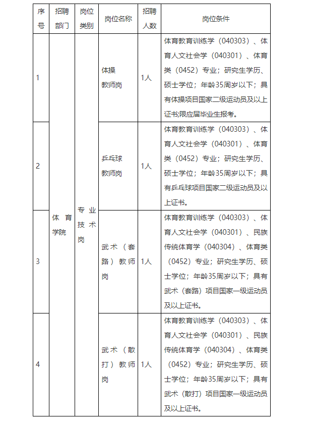 3.以上崗位條件中的學(xué)科專業(yè)按照教育部印發(fā)的《研究生學(xué)科專業(yè)目錄》《專業(yè)學(xué)位授予和人才培養(yǎng)目錄》設(shè)置,專業(yè)名稱后括號中的數(shù)字為學(xué)科專業(yè)代碼。