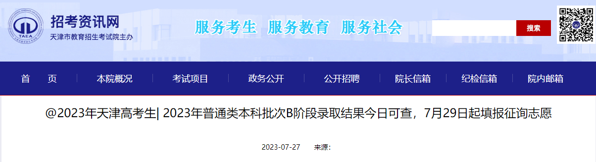 2023年天津普通類本科批次B階段錄取結果查詢入口 點擊進入