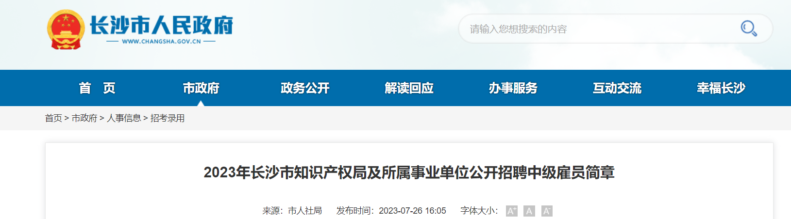 2023年湖南省長(zhǎng)沙市知識(shí)產(chǎn)權(quán)局及所屬事業(yè)單位招聘中級(jí)雇員4人。網(wǎng)絡(luò)報(bào)名時(shí)間:2023年7月27日(周四)9:00—8月7日(周一)16:30。現(xiàn)將公告原文發(fā)布如下: