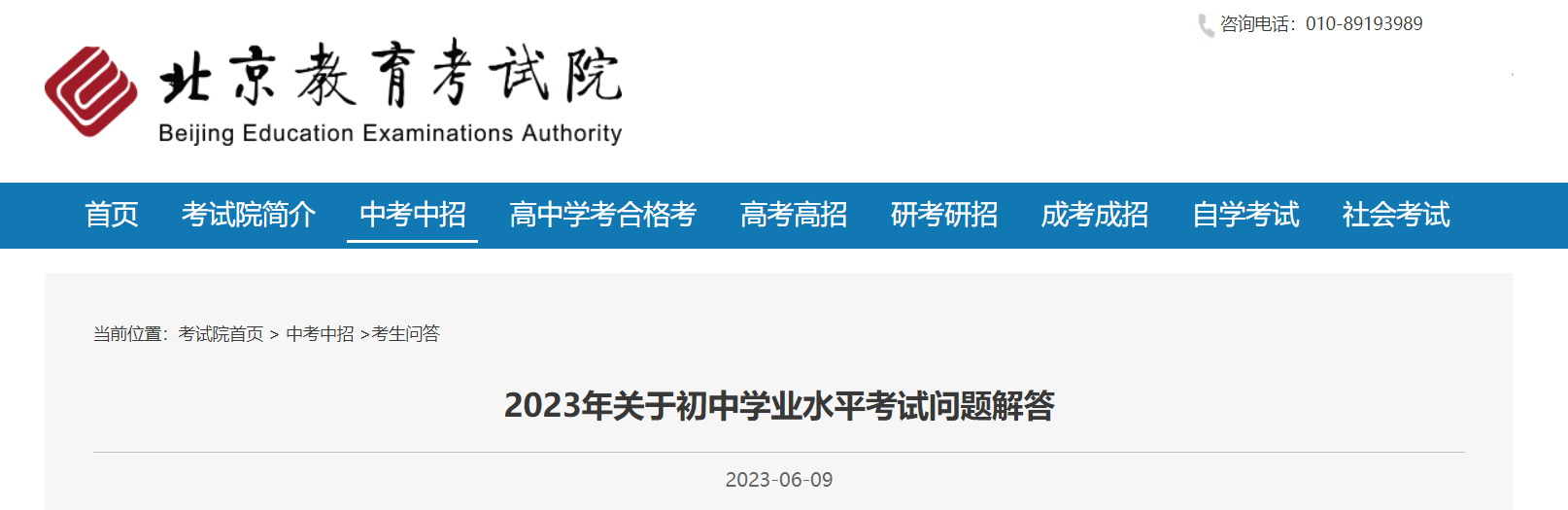 從北京教育考試院獲悉,2023年北京關(guān)于初中學(xué)業(yè)水平考試問題解答已公布,中招考試時(shí)間6月24日至26日,具體詳情如下: