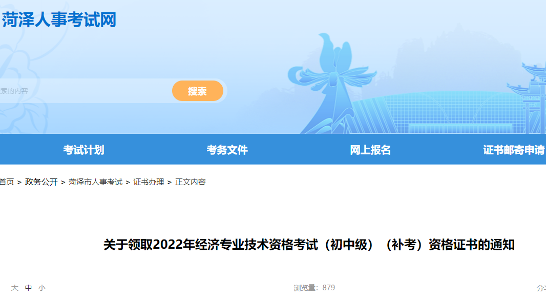 小編根據(jù)菏澤人事考試網(wǎng)發(fā)布“關(guān)于領(lǐng)取2022年經(jīng)濟專業(yè)技術(shù)資格考試(初中級)(補考)資格證書的通知”得知,2022年山東菏澤中級經(jīng)濟師補考證書領(lǐng)取于2023年6月6日開始發(fā)放,領(lǐng)取證書方式如下: