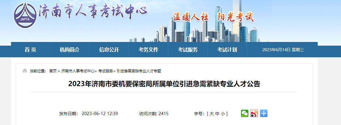 為加快推進“強新優(yōu)富美高”新時代社會主義現(xiàn)代化強省會建設(shè),大力引進急需緊缺專業(yè)人才,現(xiàn)將2023年濟南市委機要保密局所屬單位引進急需緊缺專業(yè)人才相關(guān)事宜公告如下: