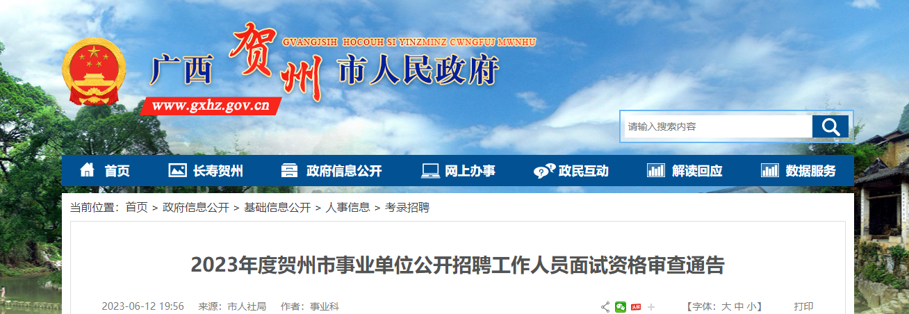 (一)面試公告將于2023年7月初在賀州市人民政府門戶網(wǎng)站(http://www.gxhz.gov.cn/xxgk/jcxxgk/rsxx/klzp/)公布。請(qǐng)考生自行查看。