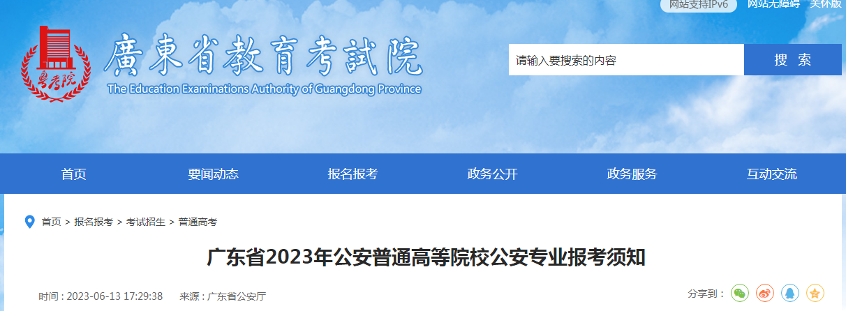 從廣東省教育考試院了解到,廣東省2023年公安普通高等院校公安專業(yè)報考須知已公布,詳細內(nèi)容如下: