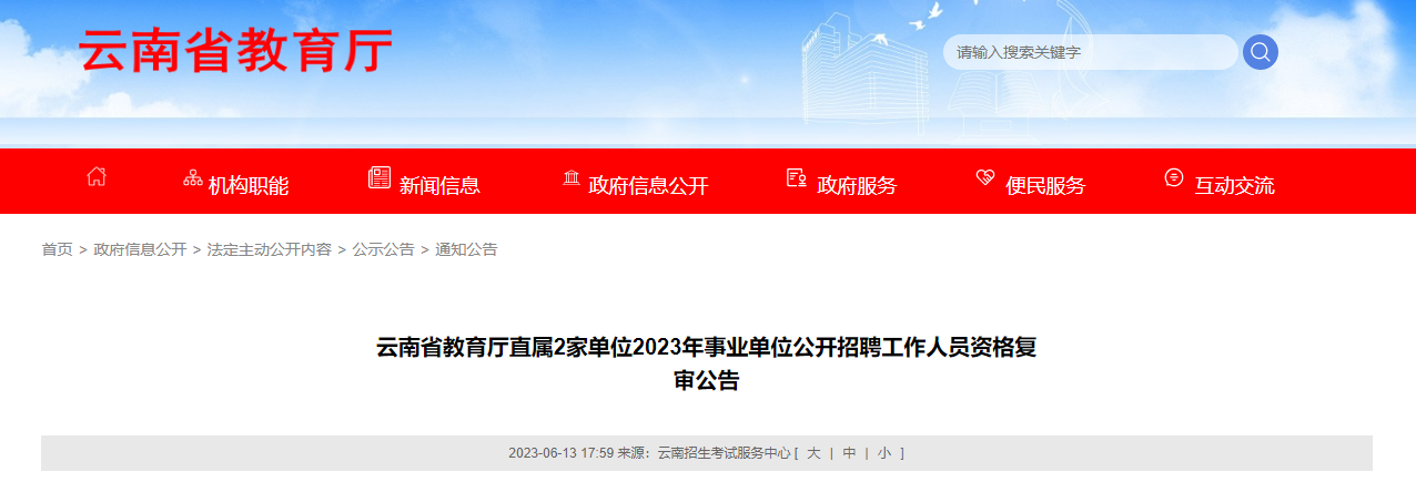 原文標(biāo)題:云南省教育廳直屬2家單位2023年事業(yè)單位公開招聘工作人員資格復(fù)審公告