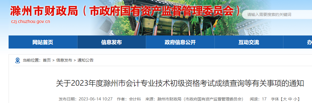 原文標(biāo)題:關(guān)于2023年度滁州市會(huì)計(jì)專業(yè)技術(shù)初級(jí)資格考試成績(jī)查詢等有關(guān)事項(xiàng)的通知