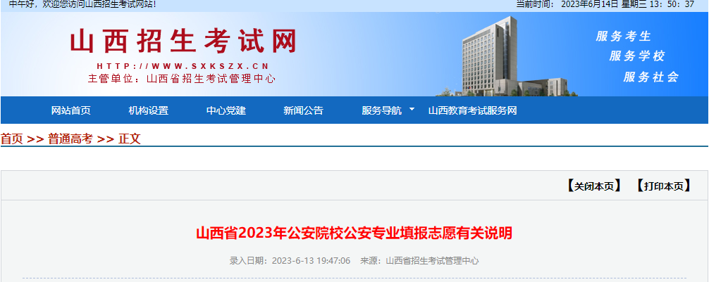 從山西招生考試網了解到,2023年山西公安院校公安專業(yè)填報志愿有關說明已公布,相關事宜如下: