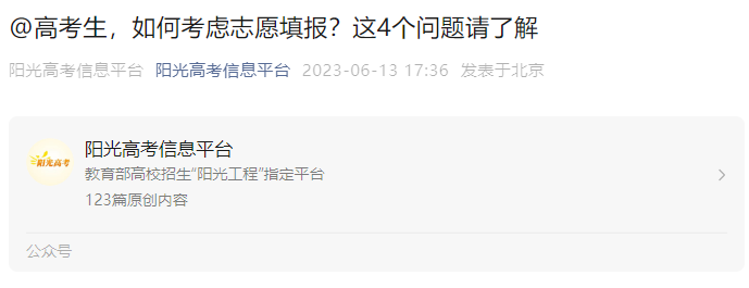 高考頻道從陽光高考信息平臺(tái)了解到,2023年高考志愿填報(bào)需要了解的4個(gè)問題已公布,具體如下: