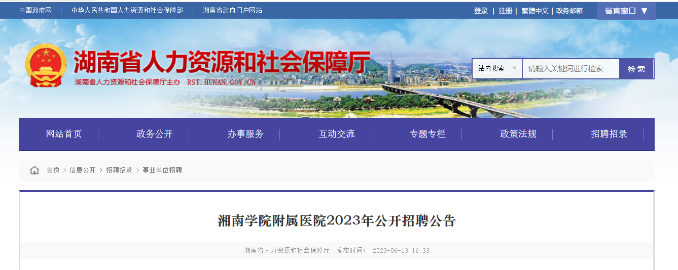 招聘信息通過(guò)湖南省人力資源和社會(huì)保障廳(http://rst.hunan.gov.cn/)、湘南學(xué)院、湘南學(xué)院附屬醫(yī)院網(wǎng)站面向社會(huì)公開(kāi)發(fā)布。