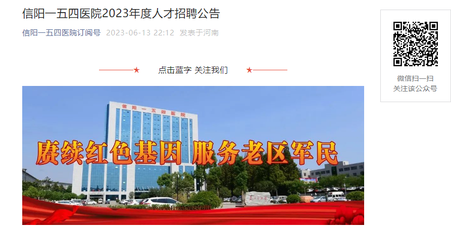 原文標(biāo)題:信陽一五四醫(yī)院2023年度人才招聘公告
