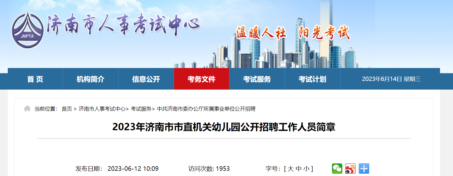 根據(jù)事業(yè)單位公開招聘有關(guān)規(guī)定,結(jié)合濟南市市直機關(guān)幼兒園崗位空缺情況和工作需要,現(xiàn)將2023年濟南市市直機關(guān)幼兒園面向社會公開招聘工作人員有關(guān)事項公告如下: