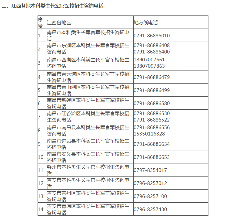 原文標(biāo)題:江西省2023年軍隊(duì)院校招生有關(guān)咨詢方式