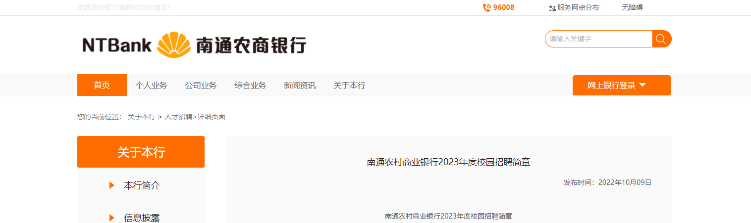 未來有你,一路同行!南通農(nóng)村商業(yè)銀行2023年度校園招聘正式開啟,25個崗位虛位以待,現(xiàn)誠邀國內外高等院校優(yōu)秀青年學子加盟,期待與您同發(fā)展,共成長!