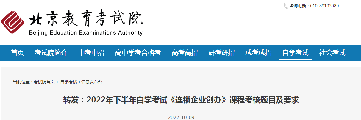 自考頻道從北京教育考試院了解到,2022年下半年北京財貿(mào)職業(yè)學(xué)院自學(xué)考試《連鎖企業(yè)創(chuàng)辦》課程考核題目及要求已發(fā)布,詳情如下: