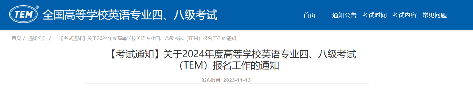 2024年度英語(yǔ)專(zhuān)業(yè)八級(jí)考試(TEM8)定于2024年4月13日(星期六)舉行,2024年度英語(yǔ)專(zhuān)業(yè)四級(jí)考試(TEM4)定于2024年6月16日(星期日)舉行。本次TEM報(bào)名對(duì)象包括符合2024年TEM報(bào)考資格的考生以及2022年已備案延考至2024年的考生。