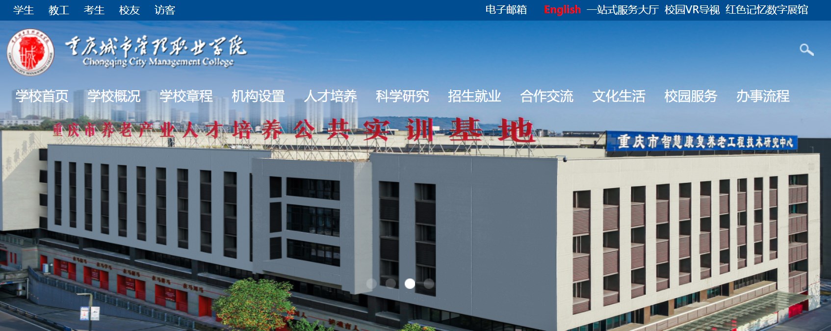 重慶城市管理職業(yè)學(xué)院(Chongqing City Management College)是由重慶市人民政府舉辦、國(guó)家民政部與重慶市人民政府共建的公辦全日制普通高等學(xué)校,是中國(guó)特色高水平專業(yè)群(A檔)建設(shè)單位、國(guó)家示范性骨干高職院校、國(guó)家優(yōu)質(zhì)??聘呗氃盒!⒔逃柯殬I(yè)院校教學(xué)診斷與改進(jìn)工作試點(diǎn)院校、重慶市首批市級(jí)示范性高職院校、重慶市優(yōu)質(zhì)高職院校。搜集的重慶城市管理職業(yè)學(xué)院網(wǎng)站網(wǎng)址,僅供大家參考!