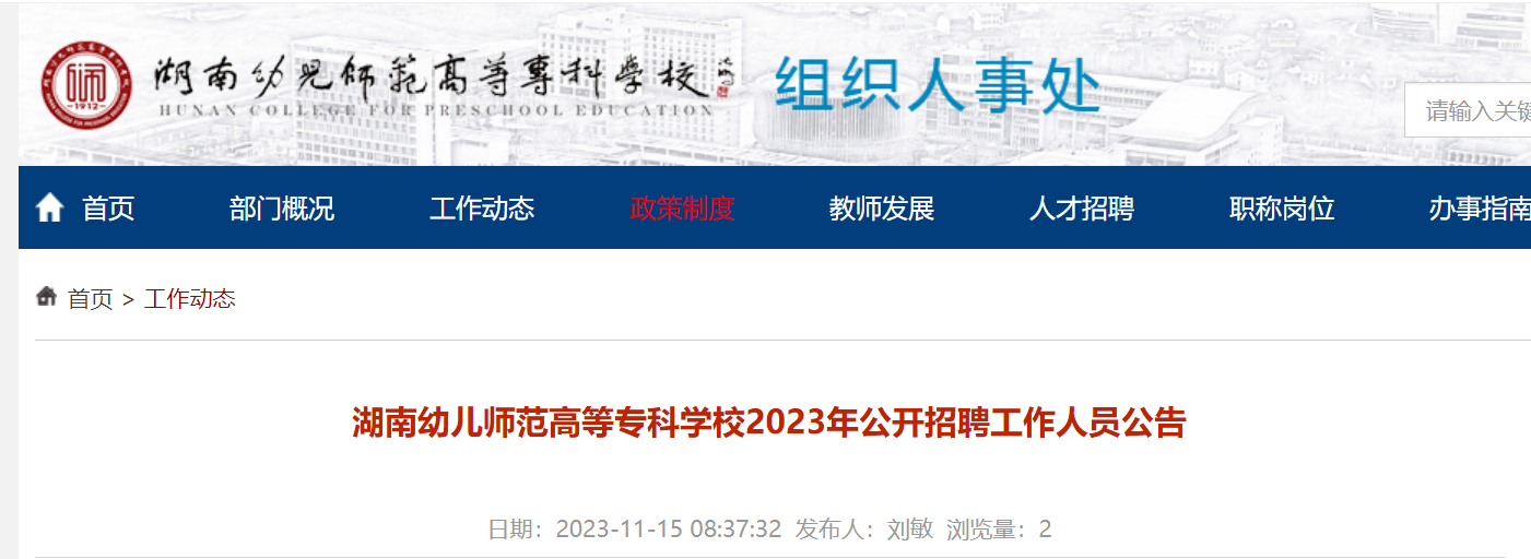 根據(jù)《事業(yè)單位人事管理條例》(中華人民共和國國務(wù)院令652號)和《湖南省事業(yè)單位公開招聘人員辦法》(湘人社發(fā)〔2019〕1號)要求,湖南幼兒師范高等??茖W(xué)校(以下簡稱湖南幼專)因工作需要,擬面向社會公開招聘工作人員29名。現(xiàn)就有關(guān)事項公告如下: