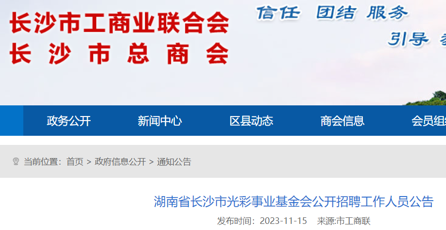 小編根據(jù)長沙市工商聯(lián)發(fā)布”湖南省長沙市光彩事業(yè)基金會公開招聘工作人員公告“得知,2023湖南省長沙市光彩事業(yè)基金會招聘工作人員報名時間公告發(fā)布之日起至2023年11月23日17:00前。