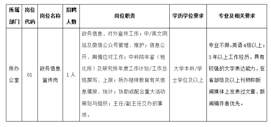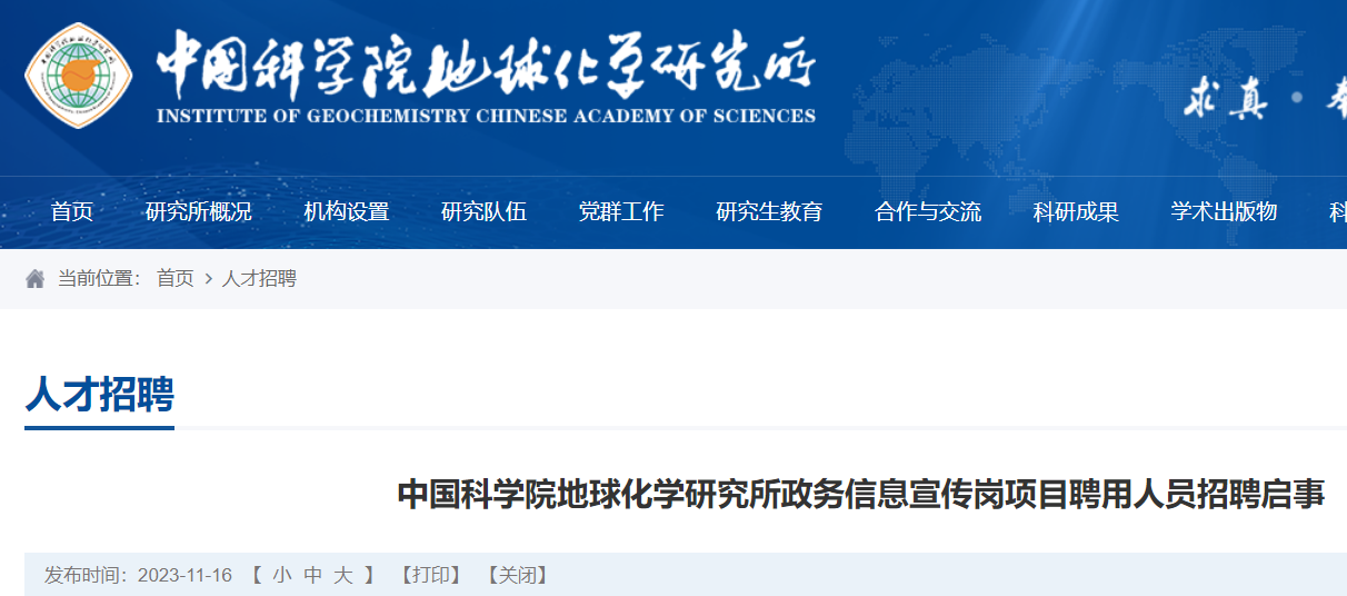 小編根據(jù)中科院地球化學(xué)研究所發(fā)布“中國科學(xué)院地球化學(xué)研究所政務(wù)信息宣傳崗項目聘用人員招聘啟事”得知,2023中國科學(xué)院地球化學(xué)研究所政務(wù)信息宣傳崗項目聘用人員招聘1人,詳情如下: