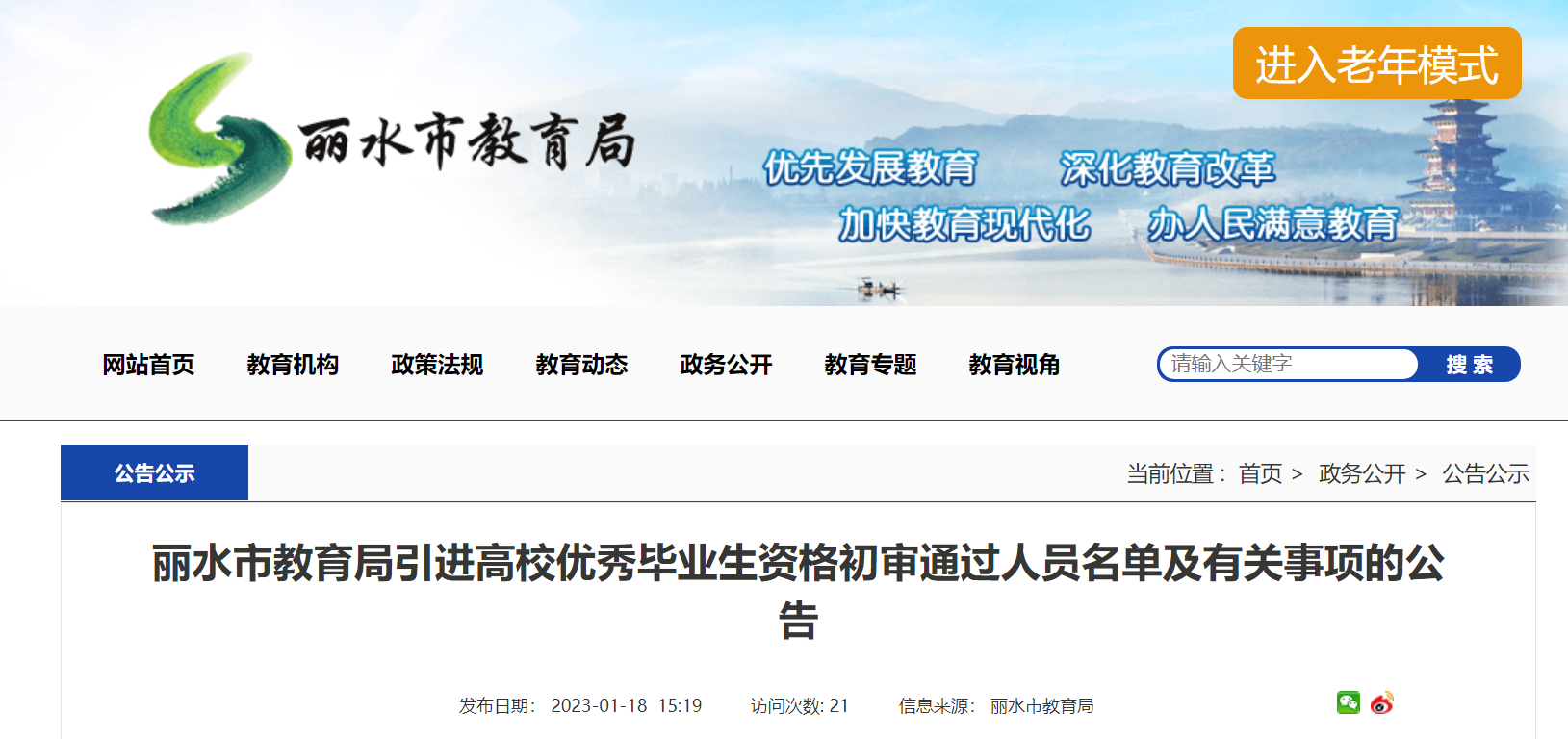 原文標(biāo)題:麗水市教育局引進(jìn)高校優(yōu)秀畢業(yè)生資格初審?fù)ㄟ^人員名單及有關(guān)事項(xiàng)的公告