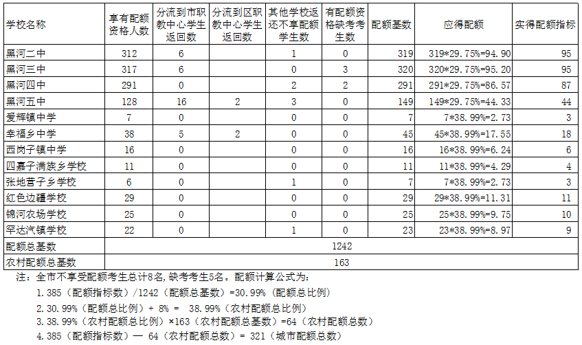 中考頻道從黑河市教育局了解到,黑龍江黑河2023年中考各校配額基數(shù)和配額數(shù)公示。詳情如下: