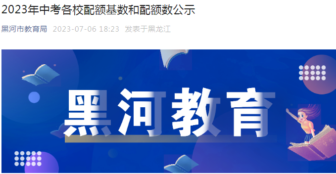 現(xiàn)將2023年黑河市中考各校配額基數(shù)和配額數(shù)公示如下,公示期為5個工作日(7月6日—7月12日)。各校如有異議,請在公示期內(nèi)與黑河市教育局高中和職成教育科聯(lián)系,電話:0456—8256589。