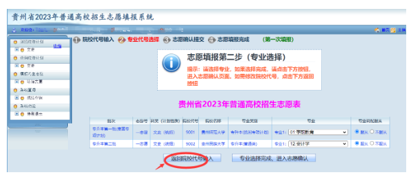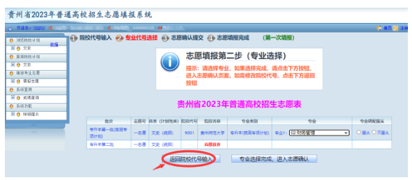 5.如果發(fā)現(xiàn)院校代號填錯請點擊“返回院校代號輸入”按鈕。(圖-11)