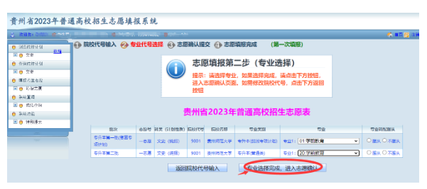 8.院校和專業(yè)填寫確定無誤后,請點擊下圖中“專業(yè)選擇完成”按鈕(圖-13),進入志愿確認頁面。