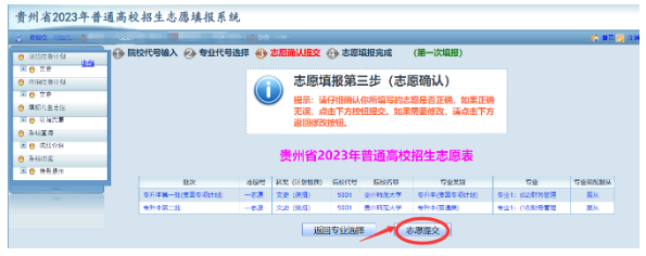 10.所填志愿經(jīng)確認無誤后,請點擊頁面下方的“志愿提交”按鈕(圖-16)。
