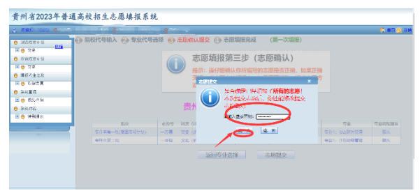 11.在志愿提交確認對話框中再次輸入登錄密碼,點擊提交按鈕,完成志愿提交(圖-17)。