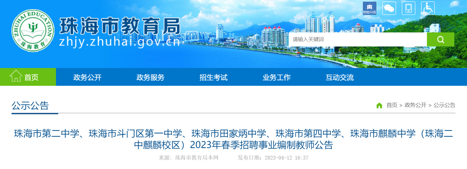 2023春季廣東珠海市二中、斗門一中、田家炳中學(xué)、四中、麒麟中學(xué)招聘教師報(bào)名入口
