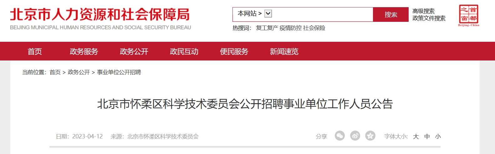 文章來源:http://rsj.beijing.gov.cn/xxgk/gkzp/202304/t20230412_3030280.html