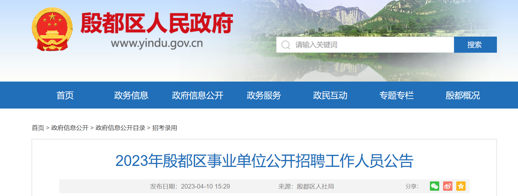 2023年4月10日在殷都區(qū)人民政府網(wǎng)(http://www.yindu.gov.cn)上發(fā)布招聘公告。