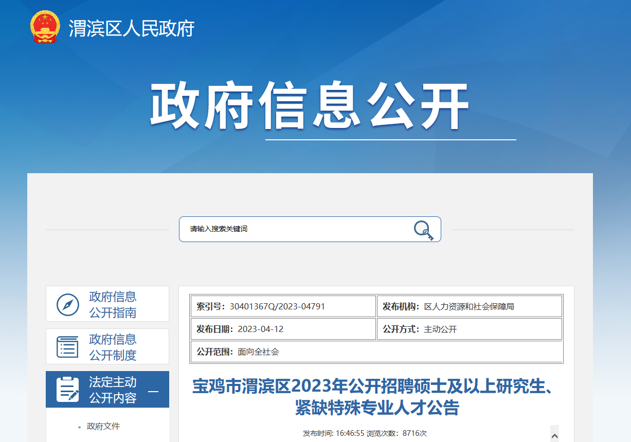 原文標(biāo)題:寶雞市渭濱區(qū)2023年公開招聘碩士及以上研究生、緊缺特殊專業(yè)人才公告