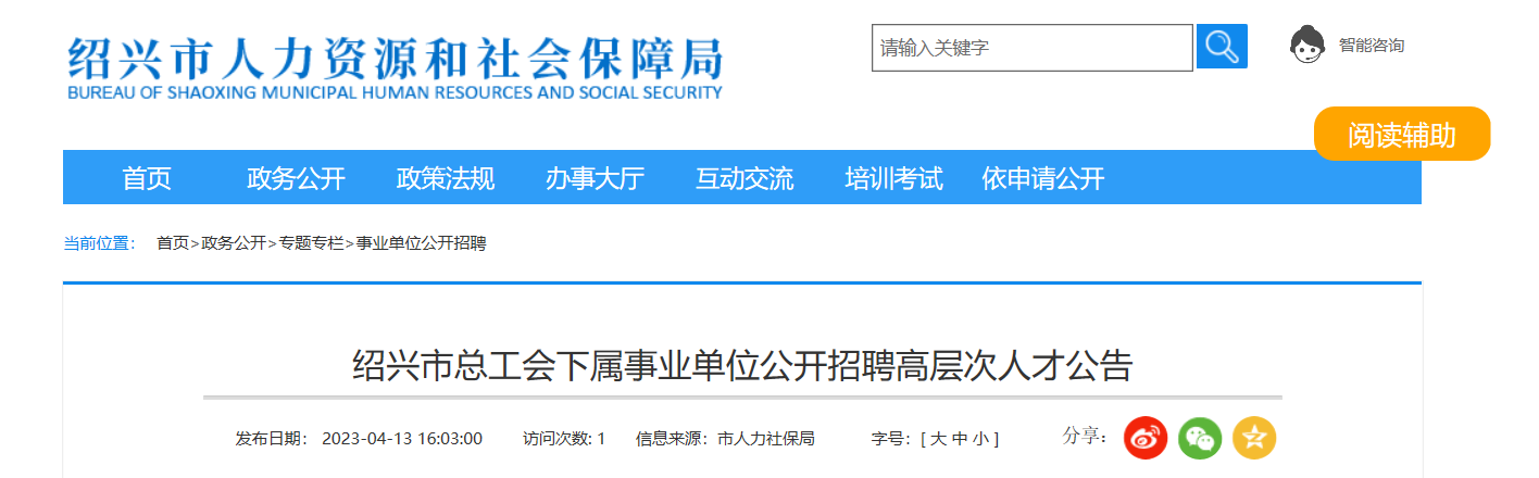 原文標題:紹興市總工會下屬事業(yè)單位公開招聘高層次人才公告