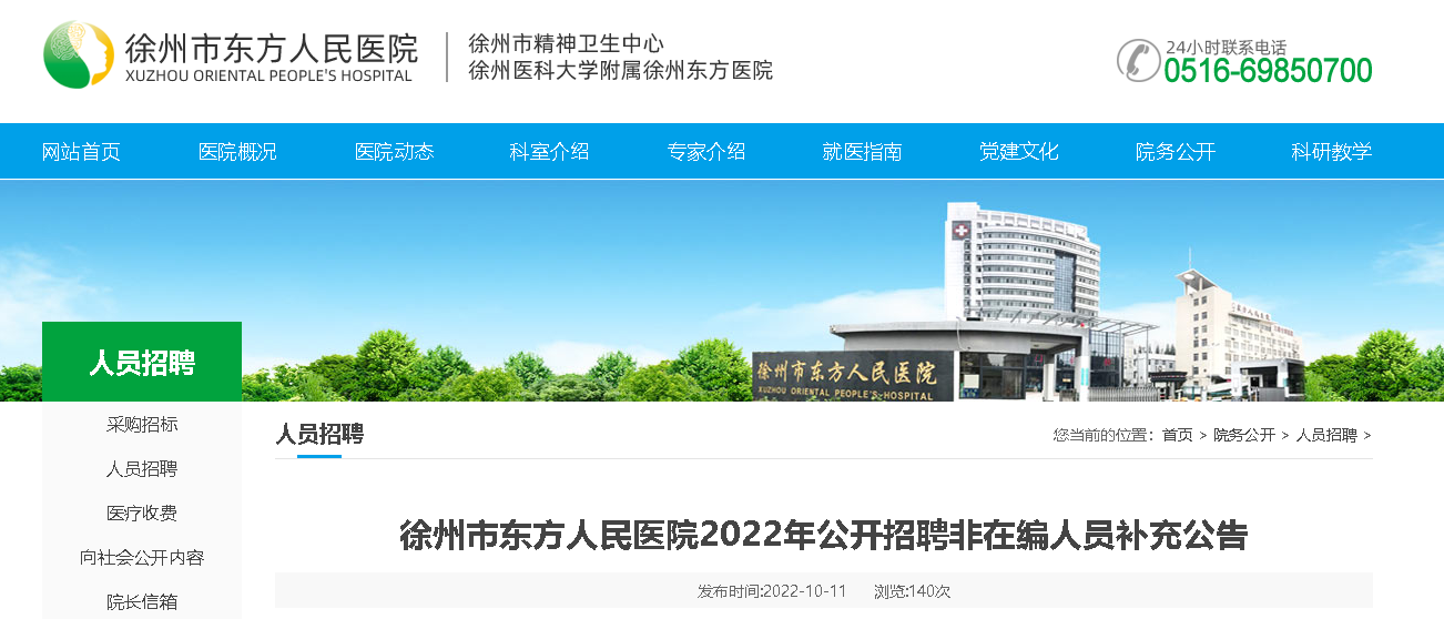 原文標(biāo)題:徐州市東方人民醫(yī)院2022年公開招聘非在編人員補(bǔ)充公告