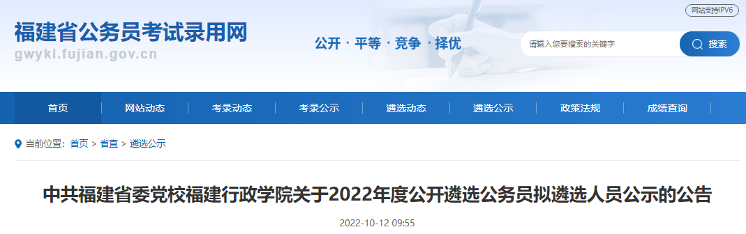 原文標(biāo)題:中共福建省委黨校福建行政學(xué)院關(guān)于2022年度公開遴選公務(wù)員擬遴選人員公示的公告