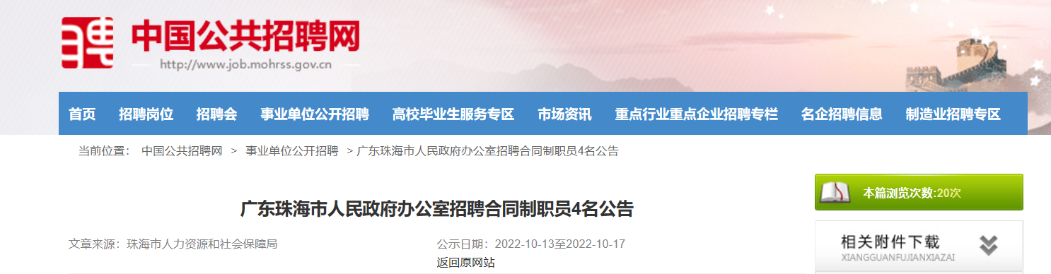 2022年廣東省珠海市人民政府辦公室招聘合同制職員公告已發(fā)布。報(bào)名時(shí)間:2022年10月13日-10月17日,現(xiàn)將招聘公告原文發(fā)布如下: