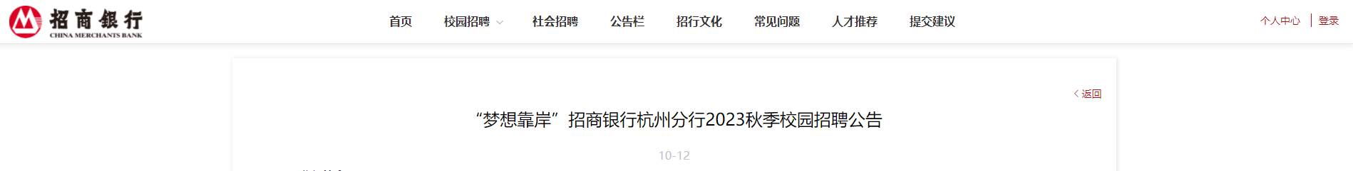 原文標題:“夢想靠岸”招商銀行杭州分行2023秋季校園招聘公告