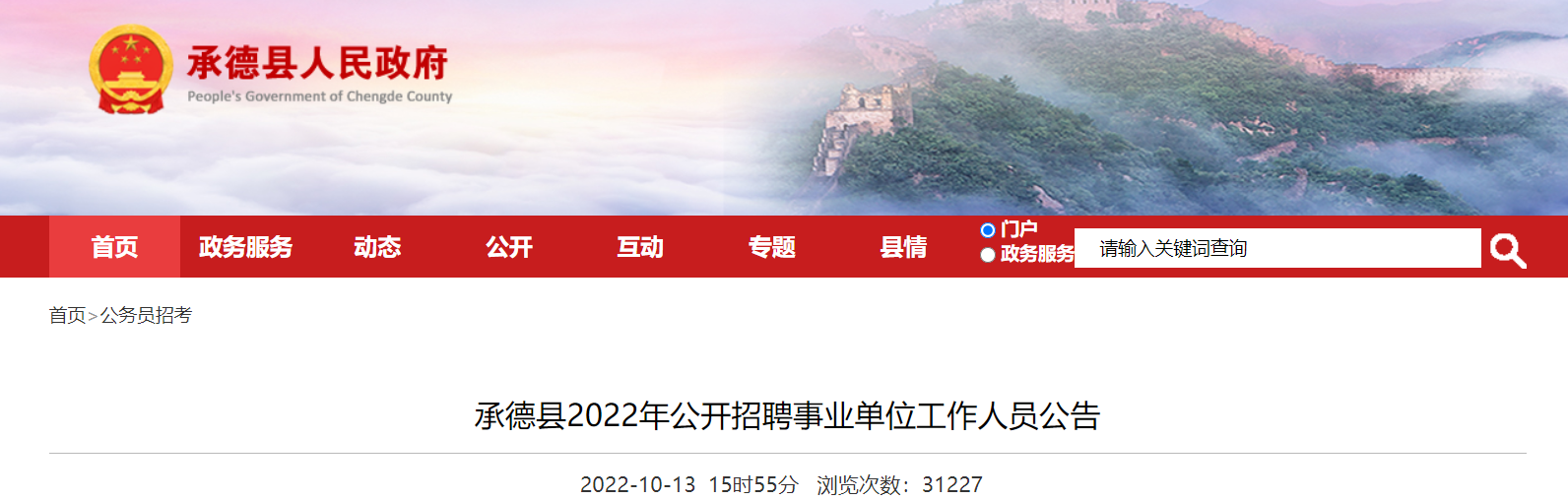 原文標題:承德縣2022年公開招聘事業(yè)單位工作人員公告
