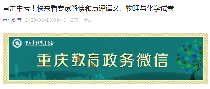 從重慶教育公眾號了解到,2023年重慶中考語文、物理與化學(xué)試卷點評公布,詳細內(nèi)容如下: